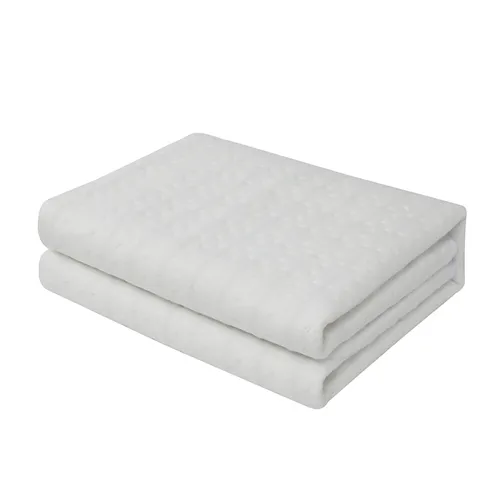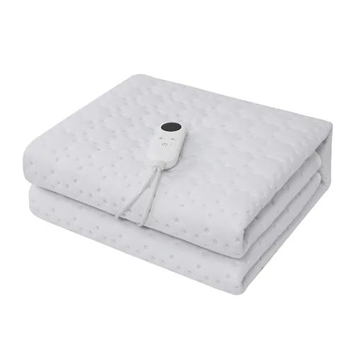 Questa coperta elettrica in poliestere fornisce calore accogliente dal basso. Viene fornito in varie miscele di materiali per diversi comfort: